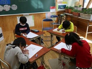 の学年も複式の授業の流れにそって、集中して授業に取り組ん