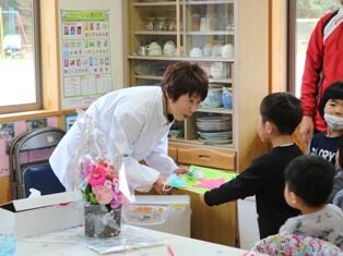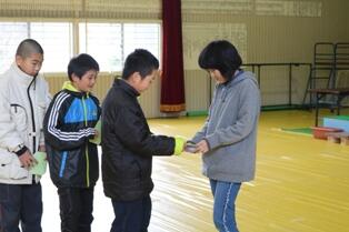 1・2年生、3・4年生からのメッセージカードの贈呈などを