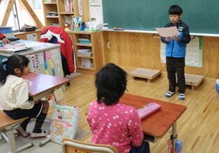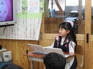 今日の2時間目に、1・2年生が一緒に国語の学習をし