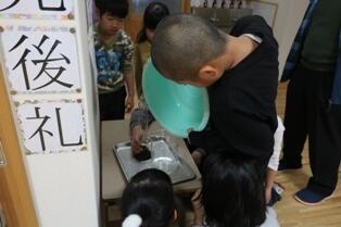 そこで今朝、子ども達一人一人に水につけた雑巾から絞
