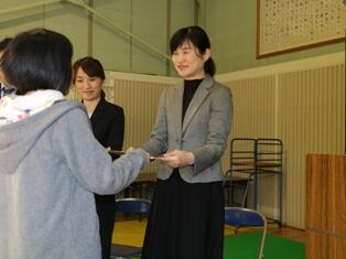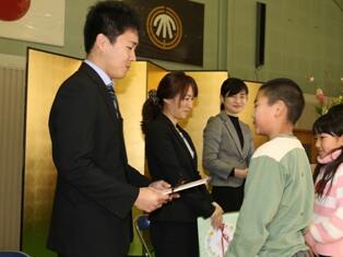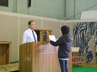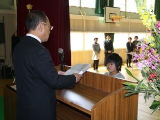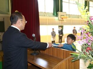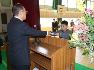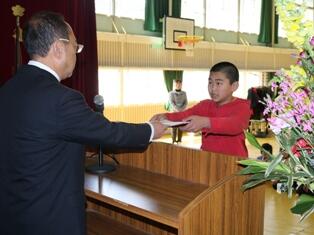 学年の代表が校長先生から修了証をもらい、全員が1年