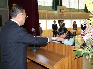 式を行いました。本年度は卒業生女子児童1名に対して、