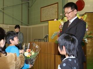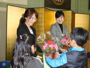 【 児童代表の言葉 】       【 お花のプレゼント 】