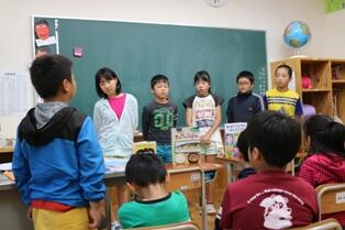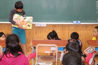 まず表現集会では、高学年が絵本の読み聞かせを行いました。
