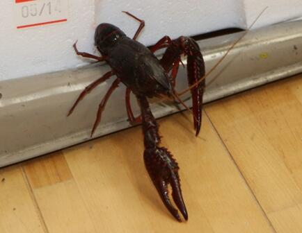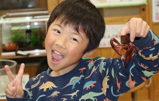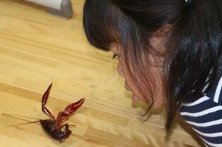 1・2年生は図工「ザリガニを描こう」で、おっかなびっくりのザリガニ観