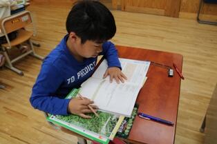 3・4年生は理科のノートをまとめていました。定規を使って丁寧にまと