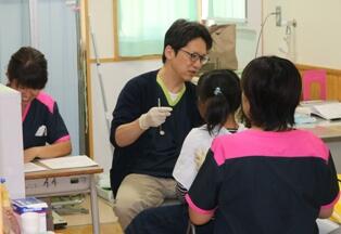 歯医者さんと歯科衛生士の方に来ていただき、子ども達の歯の検査を