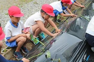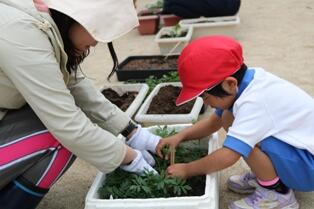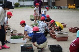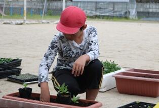 また3時間目には、栽培活動でさつまいものつる植えや花の移植を行