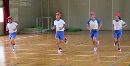 ジする演目の練習に一生懸命です。下は1・2年生の練習の様子です。