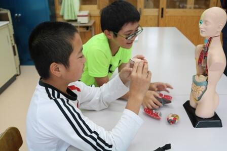 た。こちらも、模型を触って一つ一つの臓器の働きを確かめながら学習