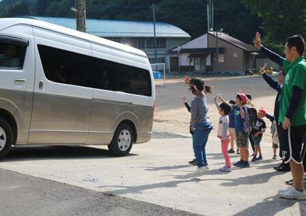 【 名残惜しそうに見送る子ども達・・・・・。 】
