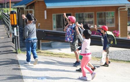 生達の熱烈な見送りに、5・6年生達はきっと元気をもらったことと思い