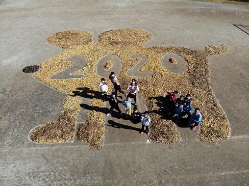 いよいよ令和元年度の落ち葉アートが完成しました。昨年度から