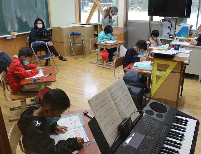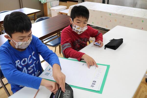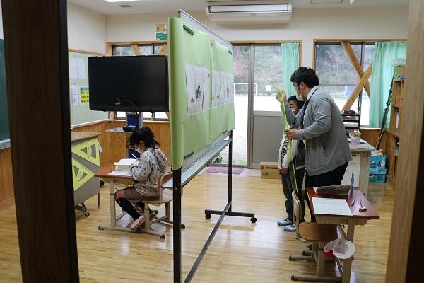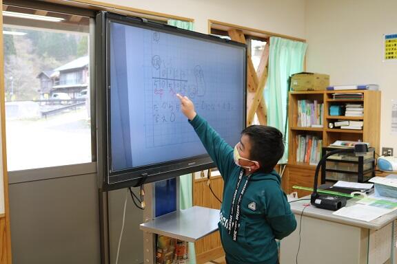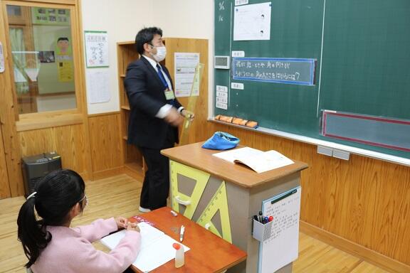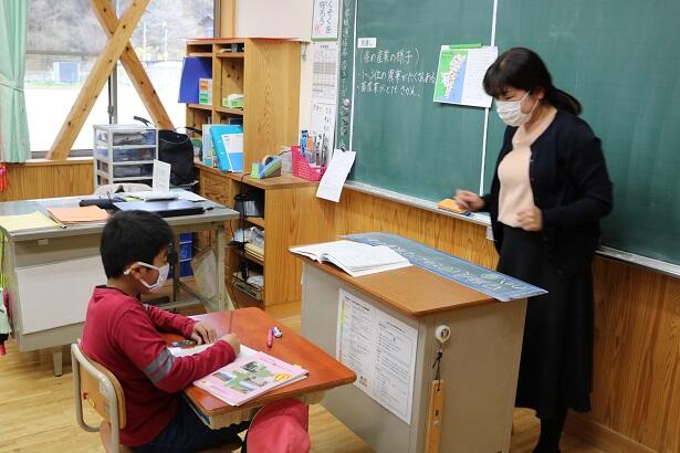 ご存じのように3年生からは複式指導ですが、先生が一方を教えている間も、自分たちで考えながら学習を進めていました。