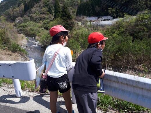 「不土野川の向こうに何か見えるよ」「学校の前でピース♪」
