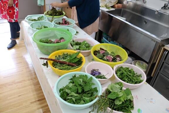 だらの芽、あしたば、ゆきのした、わらび、せり、みつばせり、ふじのはな、さど・・・たくさんの山菜がいたるところに!!