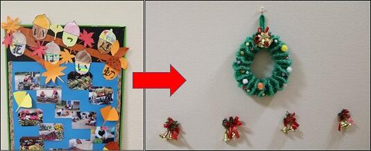 玄関の装飾は、秋からすっかりクリスマスへ模様替えです。