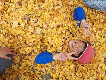落ちたてホヤホヤの落ち葉は、色もきれいで保温力抜群!
