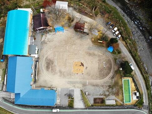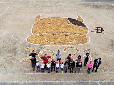 一昨日お知らせしたこのイチョウアート、今日は、久間組の久間さんのご協力により、ドローンで記念撮影をしました。
