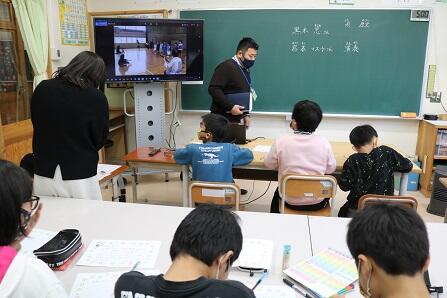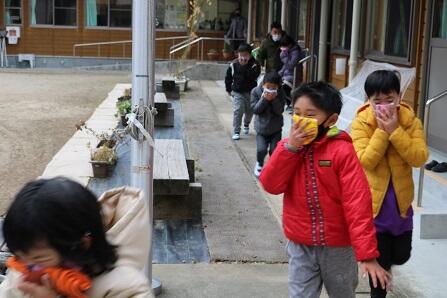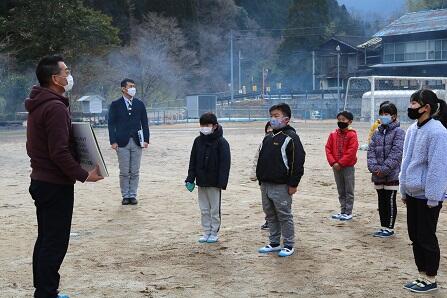 寒い中ですが、先生の話を真剣に聞いていてえらいですね。