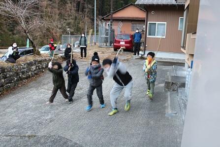 また、今日は、昔から地区につたわる恒例行事「もぐらうち」がありました。