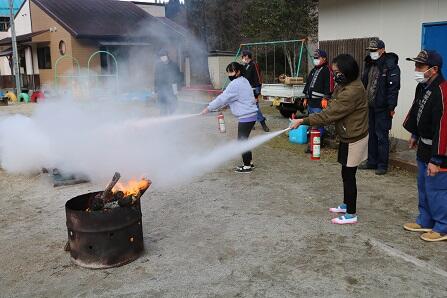 煙であっという間に火を消しますが、うまくしないと火が消え残ることも学びました。あくまで初期消火のためのもの。まずは火事を起こさないことが大事だということを実感しました。