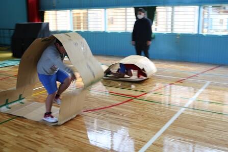 今日の5時間目、体育館をのぞくと、3・4年生がおもしろいことをやってました。