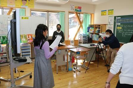 今回は、19日(金)の本番交流に向けて、それぞれが簡単な学校紹介を行いました。