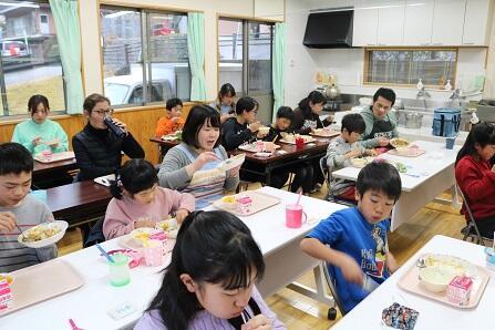 しかし、まだまだご覧の通り、前方を向いての給食です。
