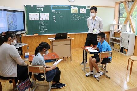 養護教諭も参加し、健康面の視点から、よくかむことの大切さを指導していました。