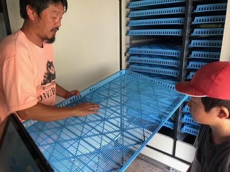 椎茸の栽培ハウスや加工施設、七草の栽培の様子を見学させていただきました。