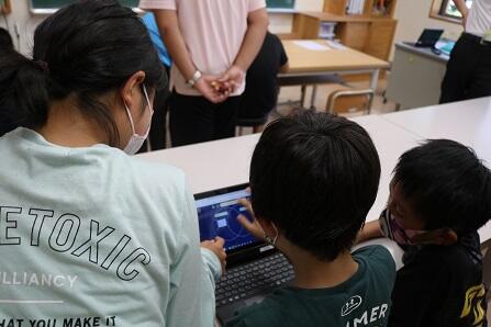 ICT支援員の宮崎大学の先生にもお越しいただき、タブレットを使った話し合いの様子を見ていただきました。