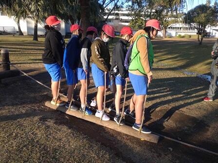 県立博物館を出発した後、班のみんなと協力してゴールの防災庁舎を目指します。