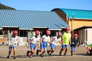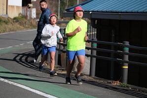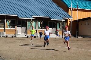 トップ集団は3~6年生!この後道路を走って700mほど走って戻ってきます。