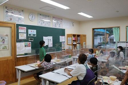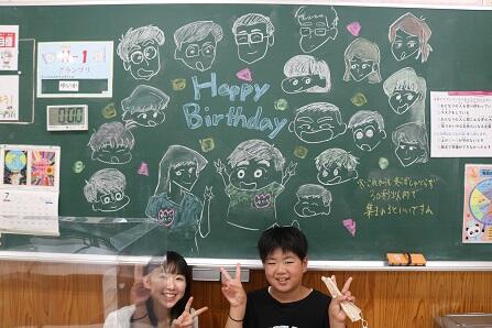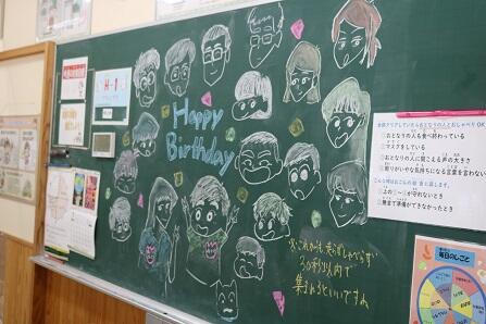 今日は、7月生まれの人のお誕生会でした。給食時間にお祝いをします。お誕生会のときは、特別に給食にミルメイクがつきます。