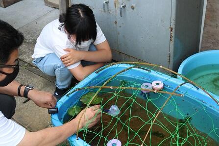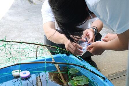6年生は、理科の学習で微生物(プランクトン)を探しているようでした。メダカ池が役に立ってます。
