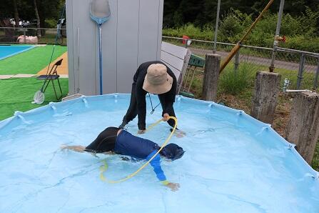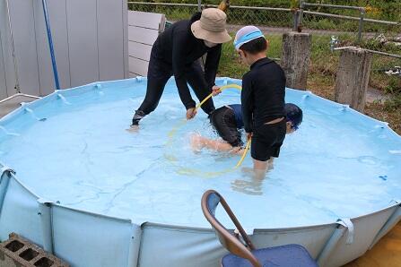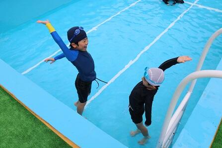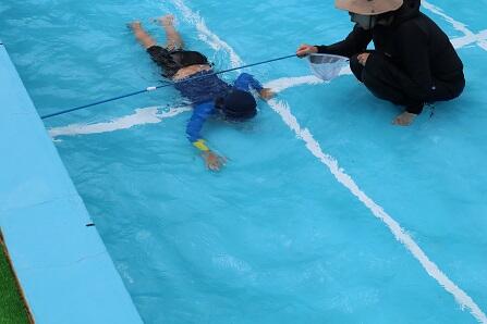 昨日、プール納会でしたが、1・2年生は今日もプールで「水遊び」。とはいっても何やら練習しているようです。2年生の子が今日は体を水に浮かすことができました(^^)/