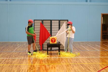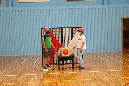 今日は、1年生が落語をみんなの前で披露したことがなく、いきなり大会では心配なので、不土野小みんなの前で小噺(こばなし)を披露することになりました。