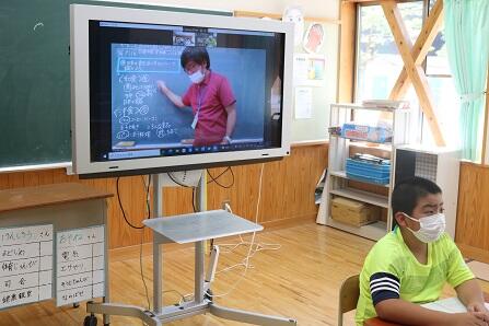 そこで、宿泊学習の時と同じように椎葉小学校の先生がオンラインで算数と国語の授業をしてくださいます。