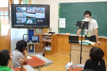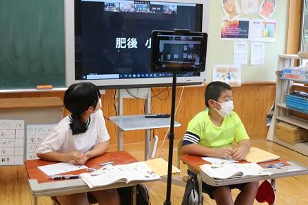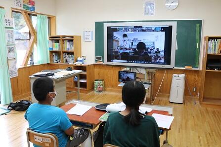 椎葉村内の5・6年生と宮崎大学附属小学校6年生がオンラインで交流学習を行いました。