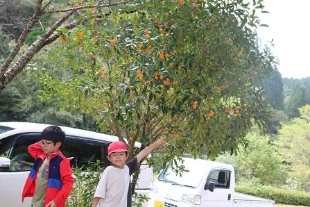 キンモクセイのところに連れて行ってくれました。キンモクセイの花が咲いて、いい匂いがしていました。
