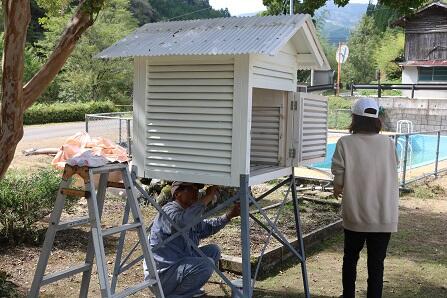 台風14号で倒れ、脚の部分が折れ曲がり、屋根が腐っていた百葉箱ですが、もうすぐ復活しそうです。