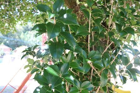 葉がギザギザです。ヒイラギの葉に似ています。しかし、ヒイラギの葉は・・・もっとギザギザしています。