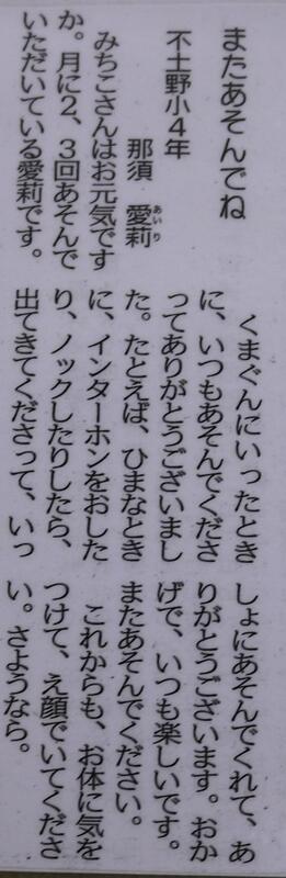 いつも遊んでくださる方への感謝の気持ちとご健康を願う気持ちが素直に表された作文ですね(^^) みちこさん、これからもお元気で、一緒に遊んでくださいね(*^_^*)