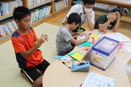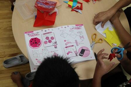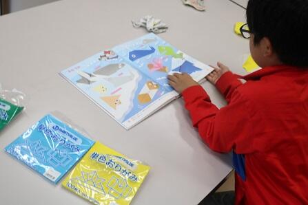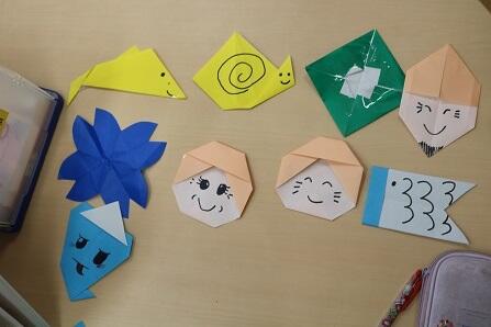 折り紙でいろいろと作っているようです。11月9日(水)に行う「ふれあい参観日」の景品を作っているようでした。