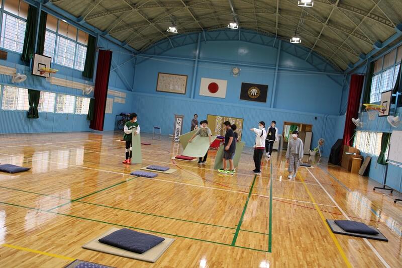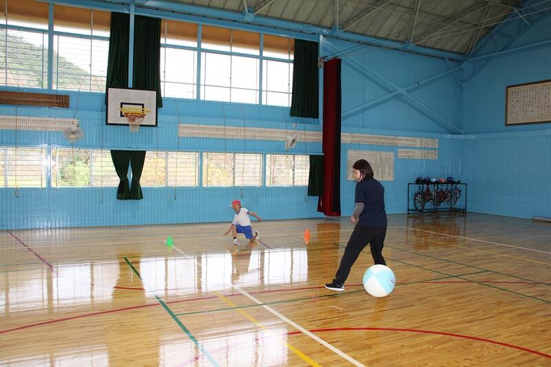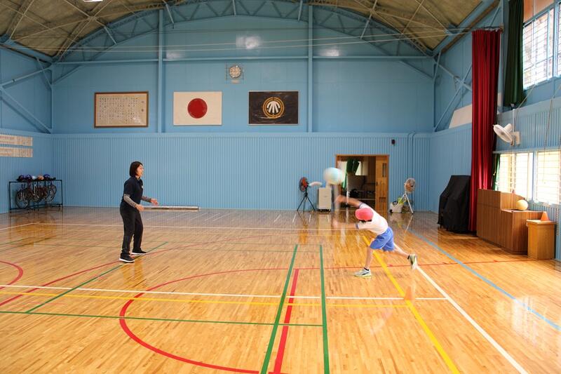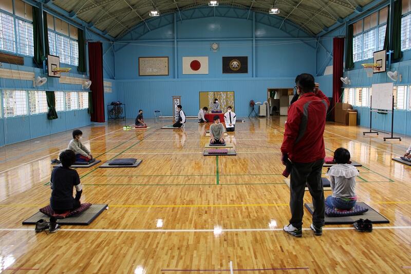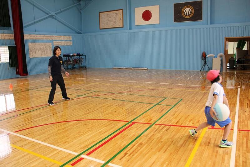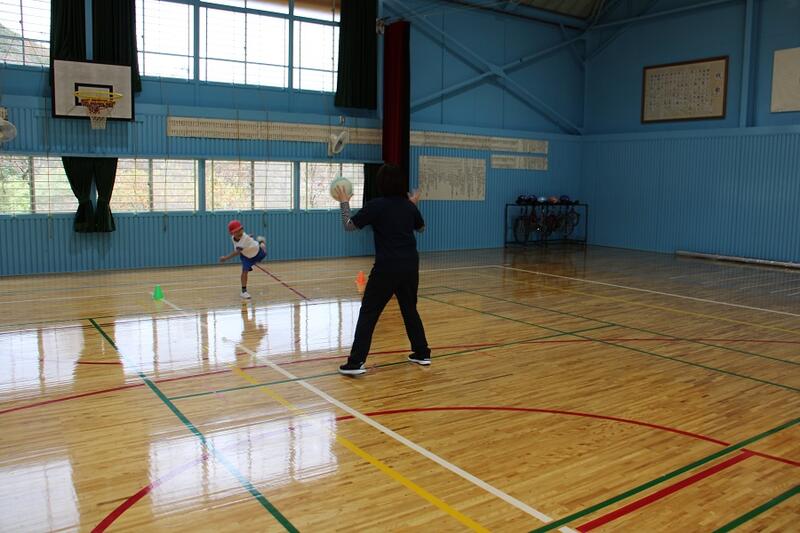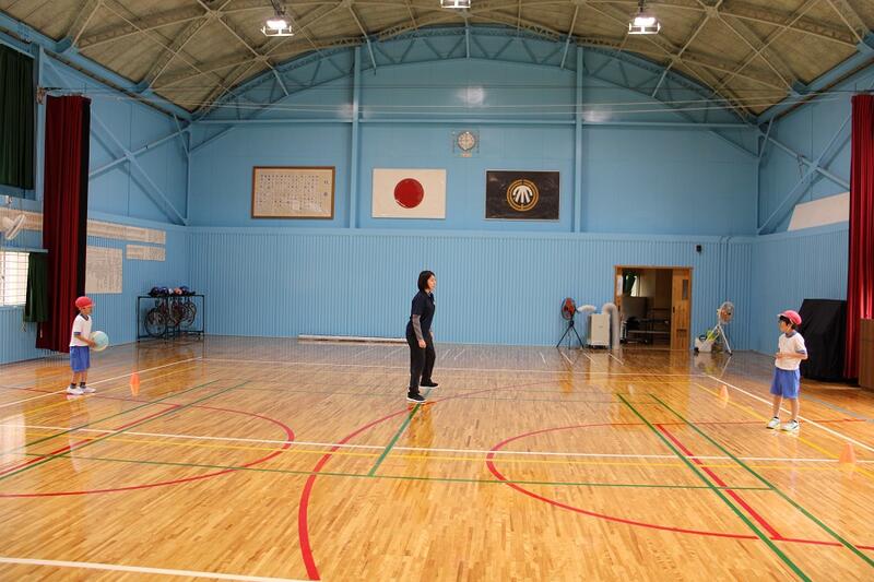雨のため体育館で体育をやっている1・2年生を見に行きました。