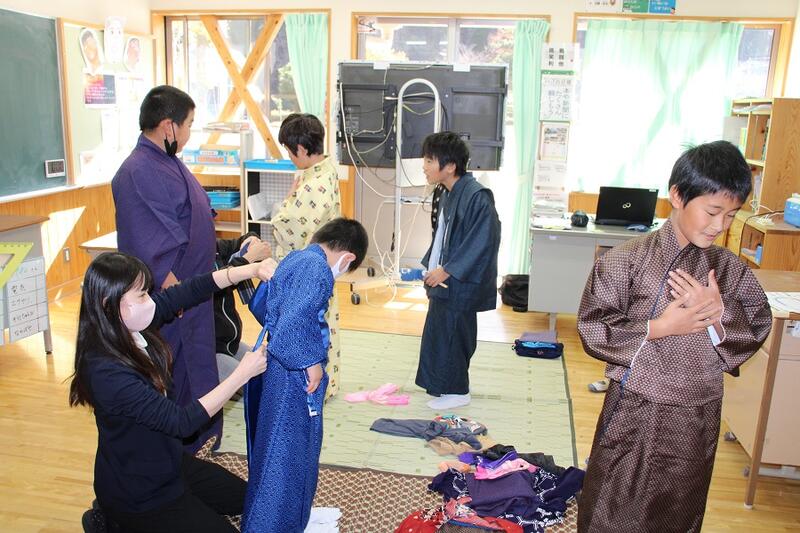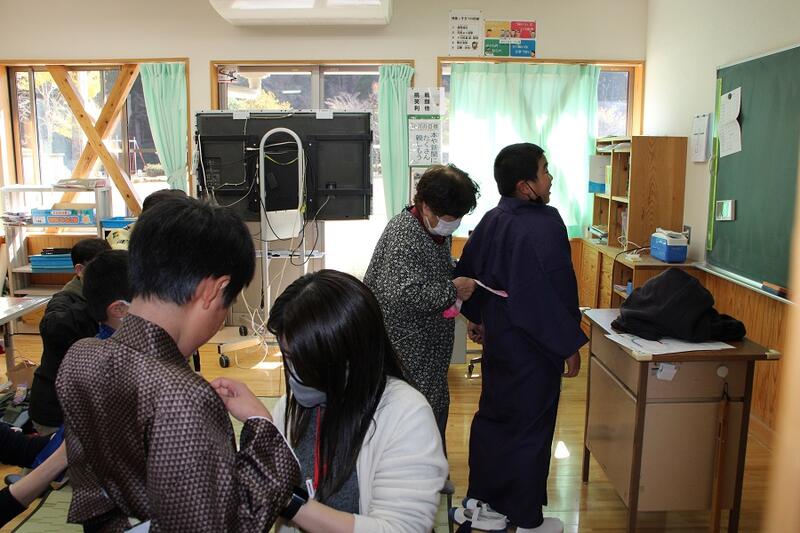 師匠が来られるときは、着物を着るので、保護者の皆様にもご協力していただいています。