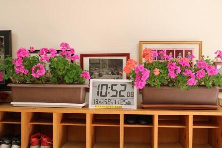 子どもたちが植え替えたペチュニアの花が一輪だけ咲いていました。