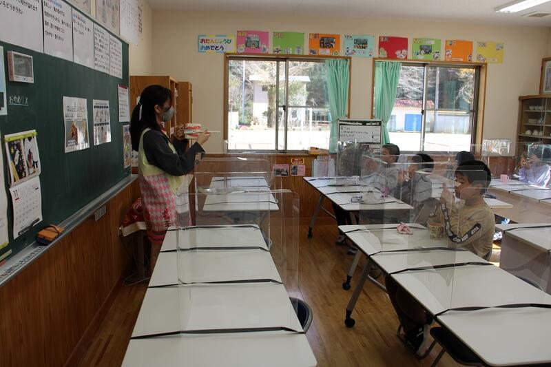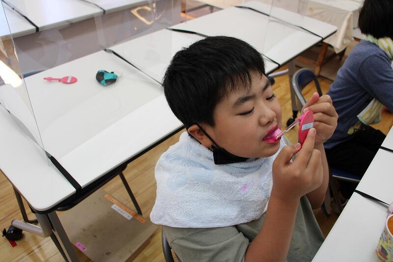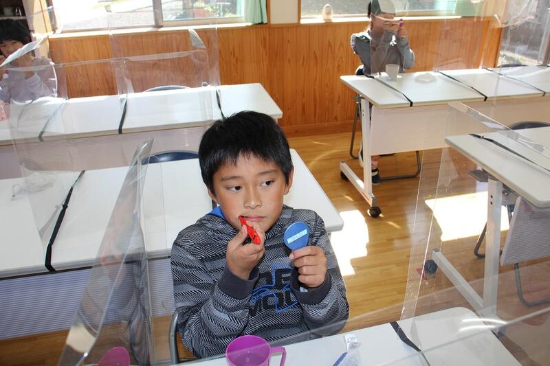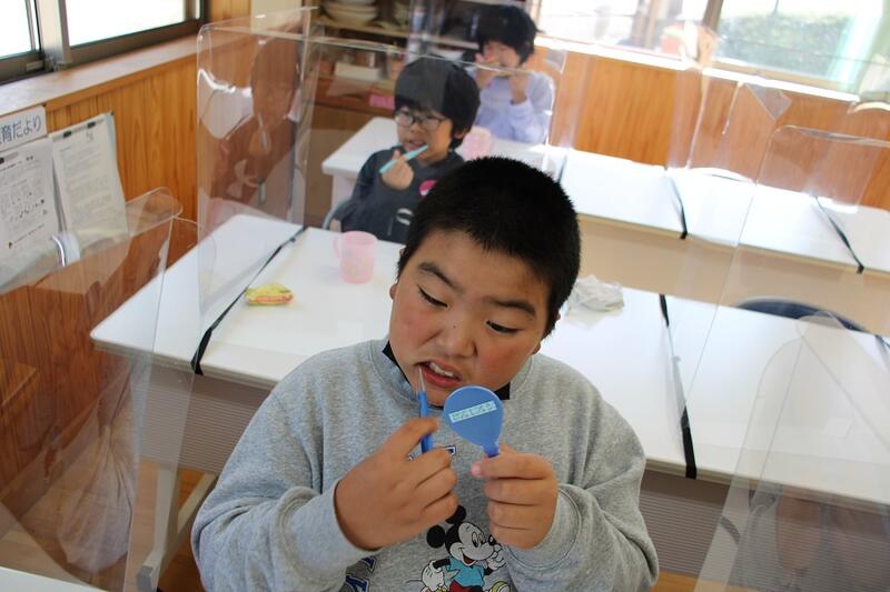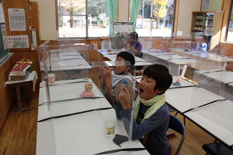 全学年が集まって給食を食べ、全員そろって歯磨きをします。