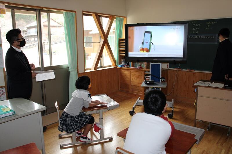 今日は、ICT活用支援員の方々に来校していただき、全学年で「情報モラルに関する授業を参観していただきました。